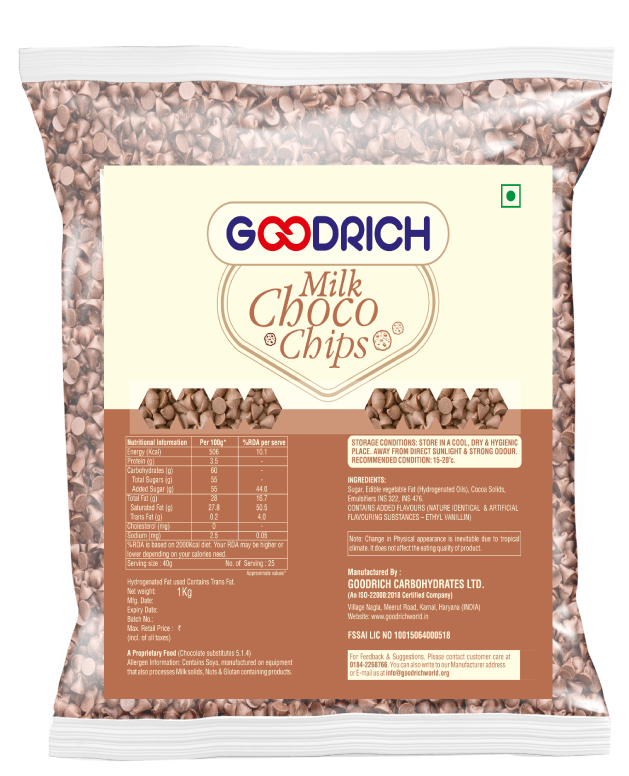 • For Baking: Fold Goodrich Milk Choco Chips into cookie dough, muffin mixes, or cake batter for a delightful chocolate experience.